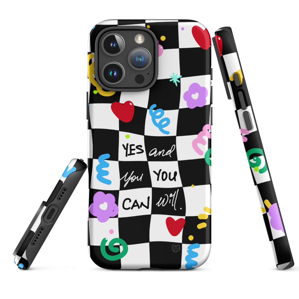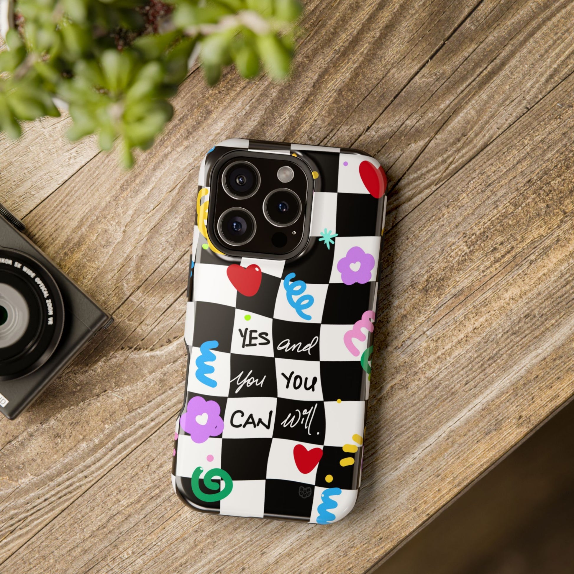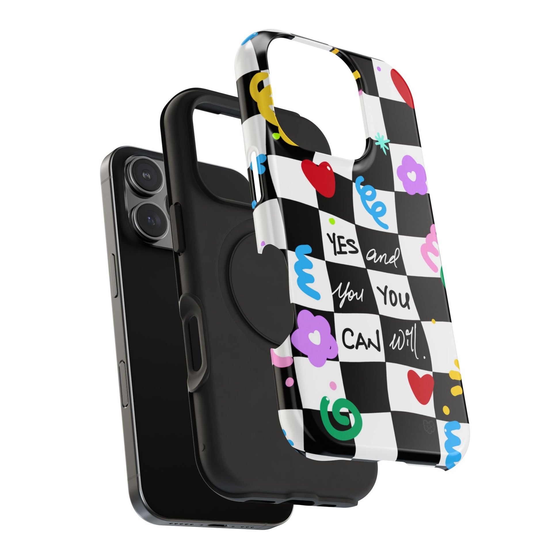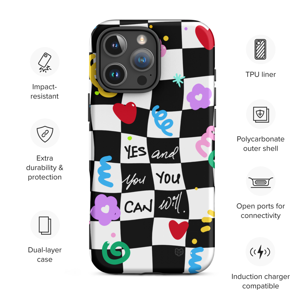 Our Vibrant Tough Case isn't just a pretty face, it's bold, bright, and built to protect. Designed for dreamers, doers, and go-getters, this case shouts confidence with its playful colors, original artwork and motivational message: "Yes you can and you will!"