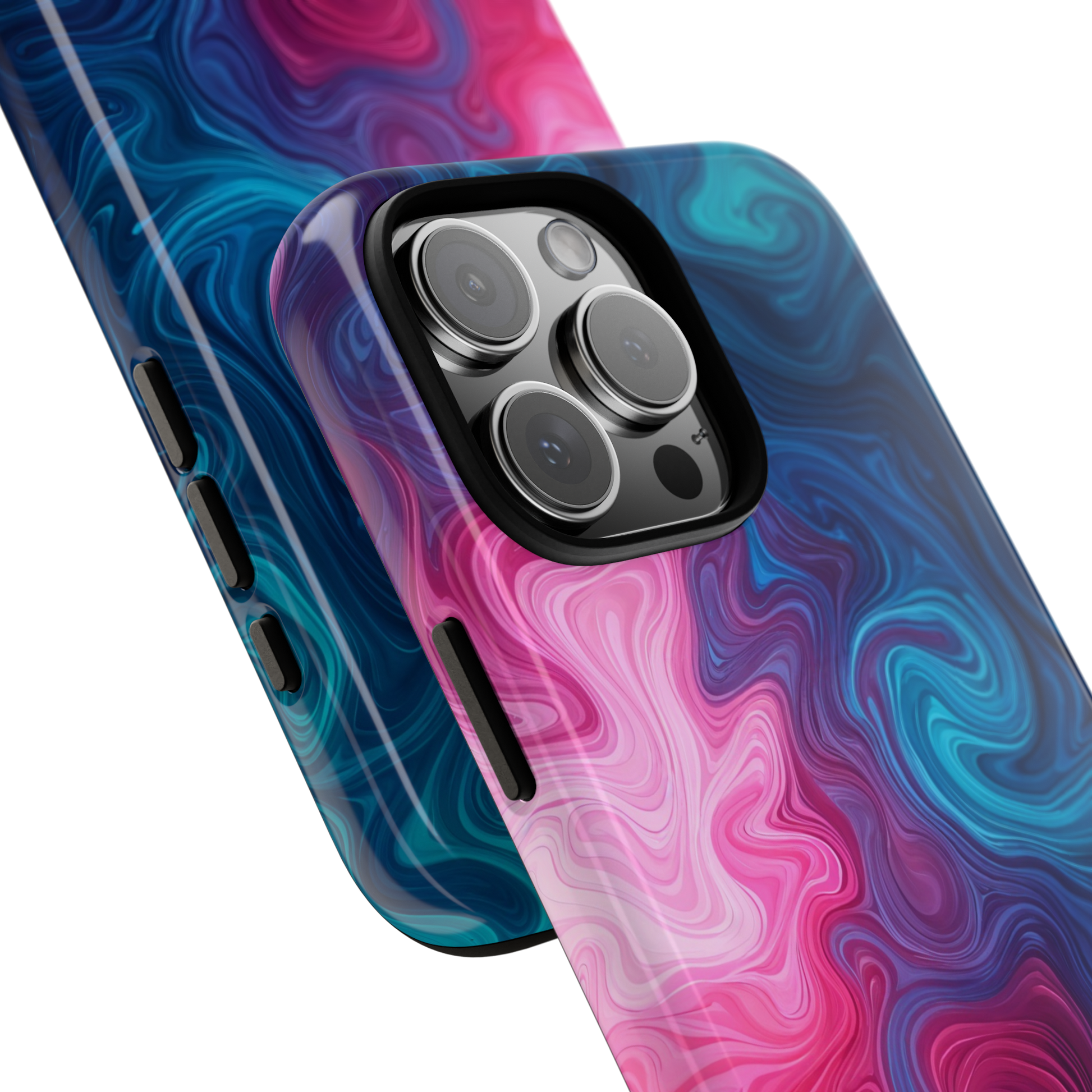 Whipped wonder, the Ink Candy Tough Case is a hypnotic swirl of electric pink and dreamy blue ink, like a cosmic storm dipped in dessert. Every twist and ripple tells a story of motion, mood and bold expression. Built to shield, styled to thrill, this case turns your phone into a handheld masterpiece.
